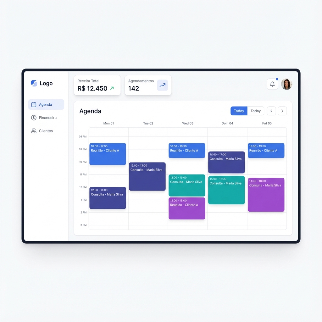 Visualize sua agenda semanal, bloqueie horários e gerencie todos os seus agendamentos em um só lugar.